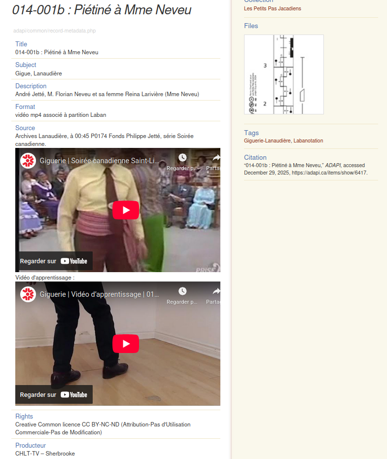 L’article La Gigue dans Lanaudière (par Pierre Chartrand) publié dans le Bulletin Mnémo 2025, tire certaines conclusions sur l’ensemble du projet. Ce texte sera disponible en libre accès vers l’été 2026 [2]